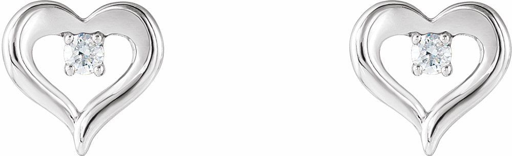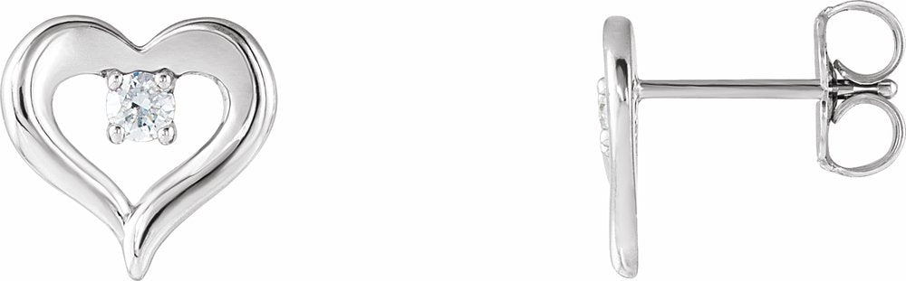 Description: 1/10 Ctw Natural Diamond Heart Stud Earrings With Backs