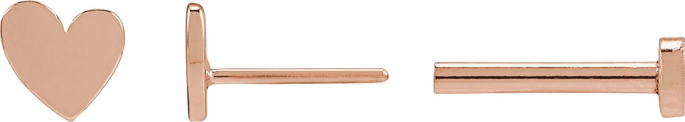 14K Rose 4 mm Asymmetrical Heart Earrings