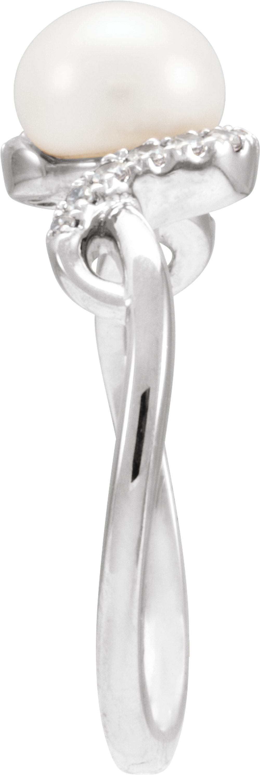 14K White Cultured White Freshwater Pearl & 1/8 CTW Natural Diamond Ring