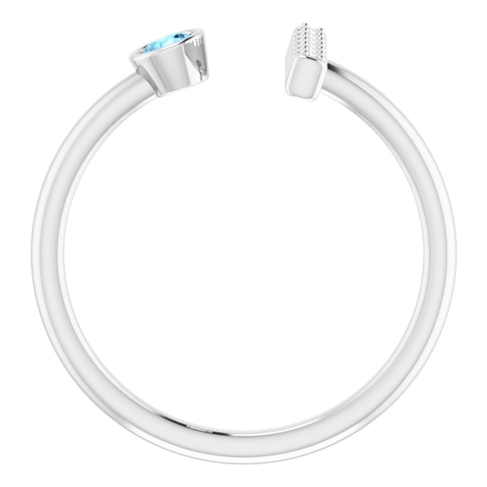14K White Natural Aquamarine & .05 CTW Natural Diamond Bar Ring