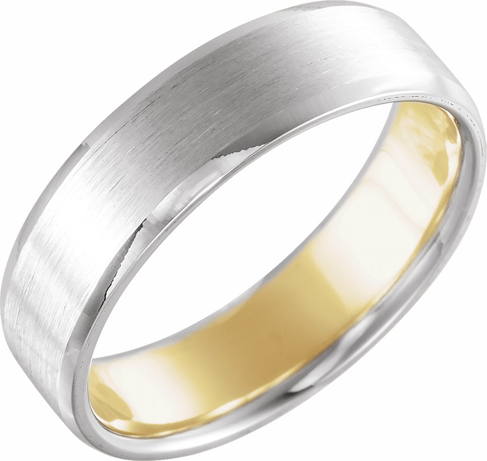 14K White/Yellow 6 mm Beveled-Edge Comfort-Fit Band Size 10.5