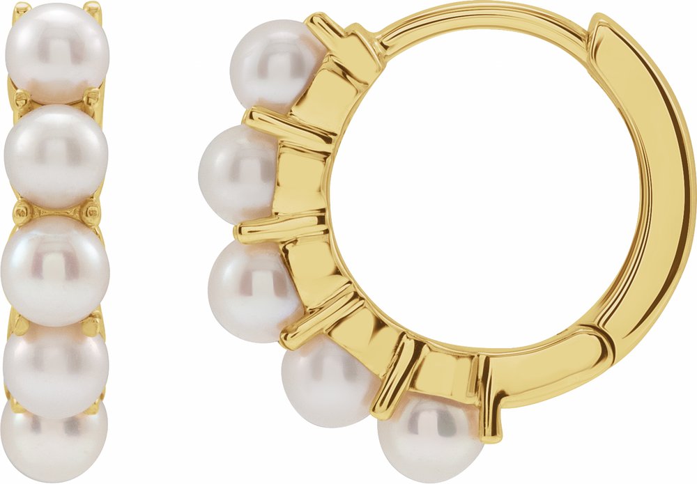 14K Yellow Gold Cultured White Freshwater Pearl 14 mm Huggie Hoop Earrings