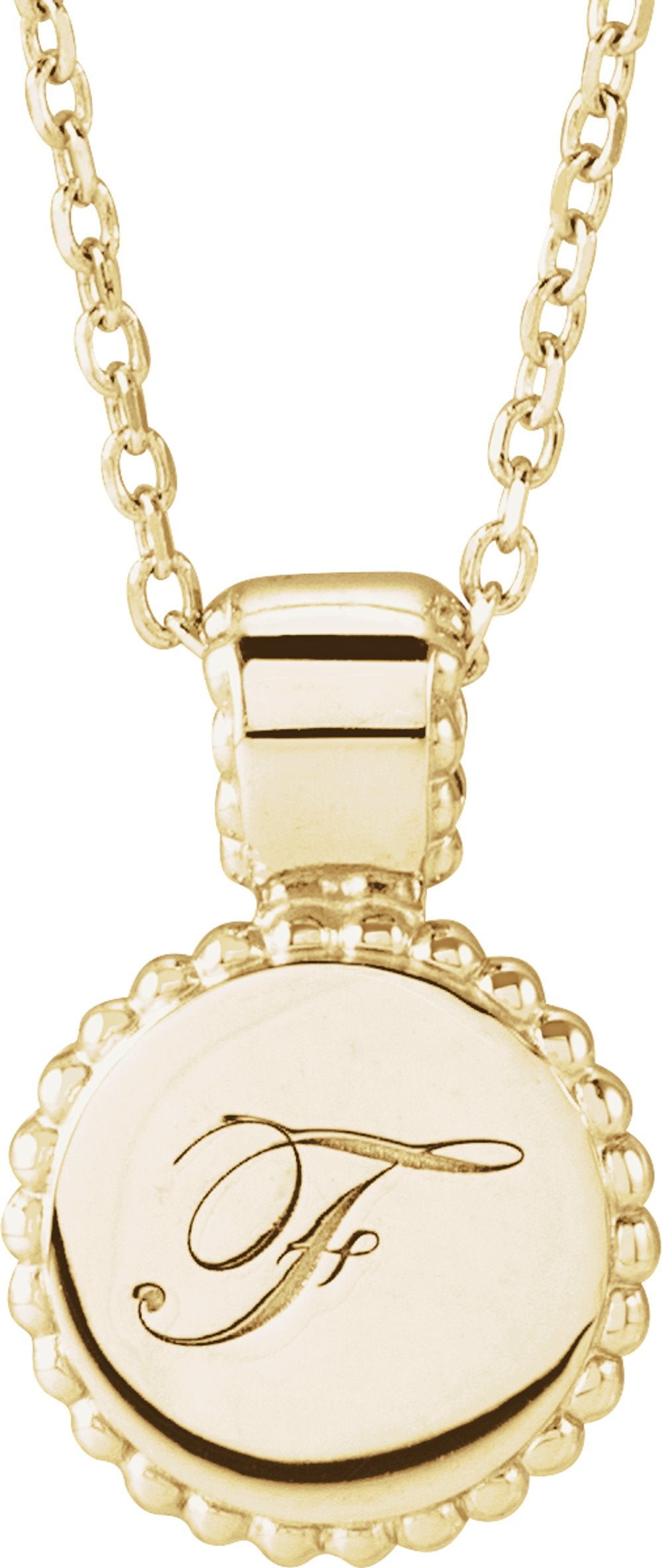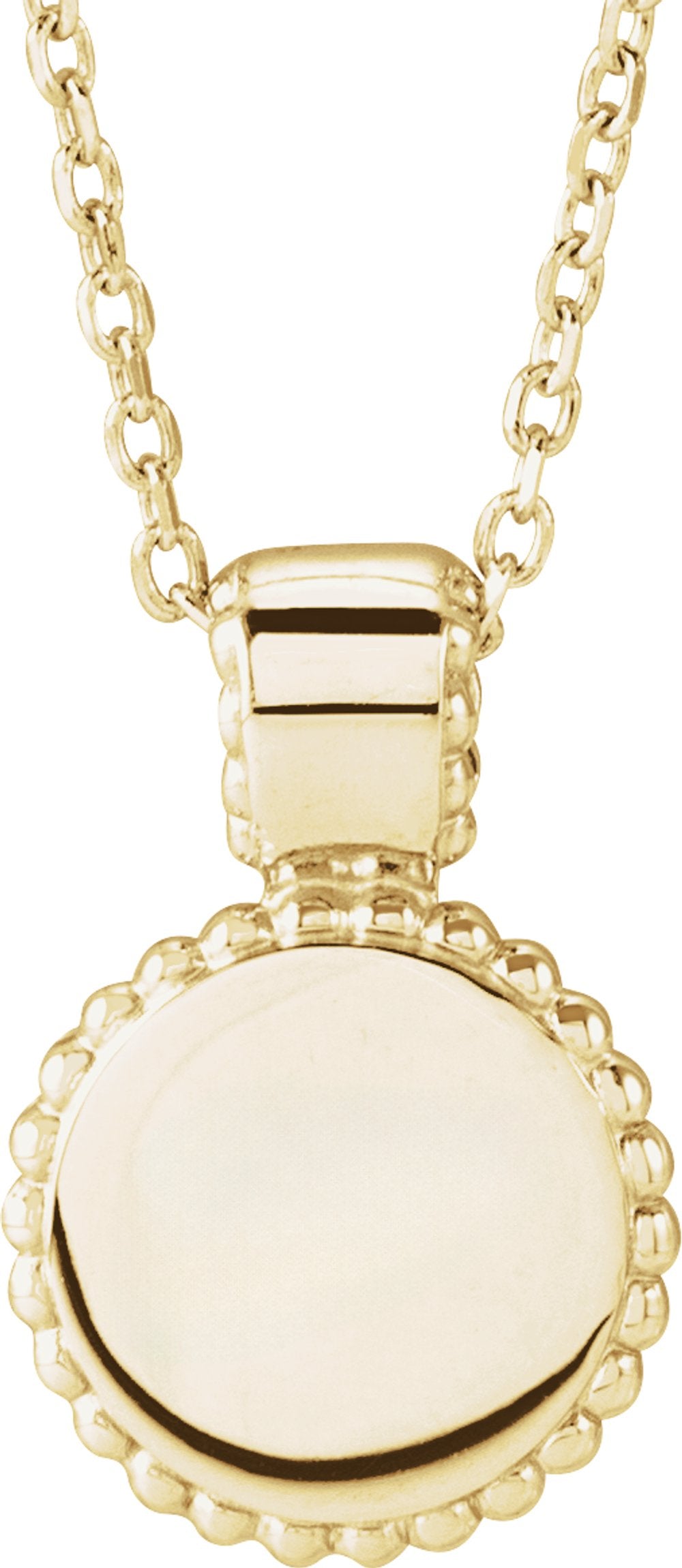 14K Yellow Gold Engravable Beaded Disc 16-18" Necklace