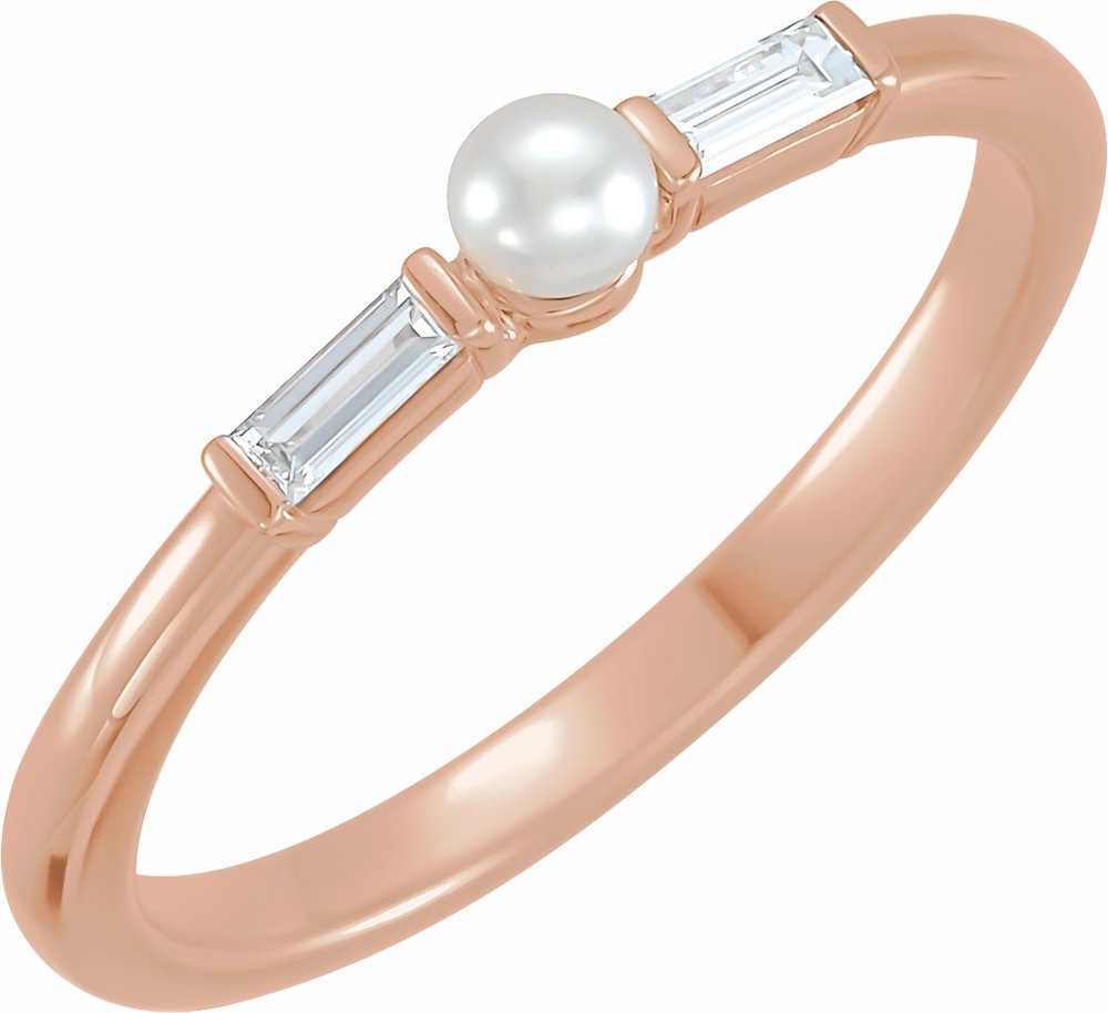 14K Rose Cultured Seed Pearl & 1/8 CTW Natural Diamond Ring
