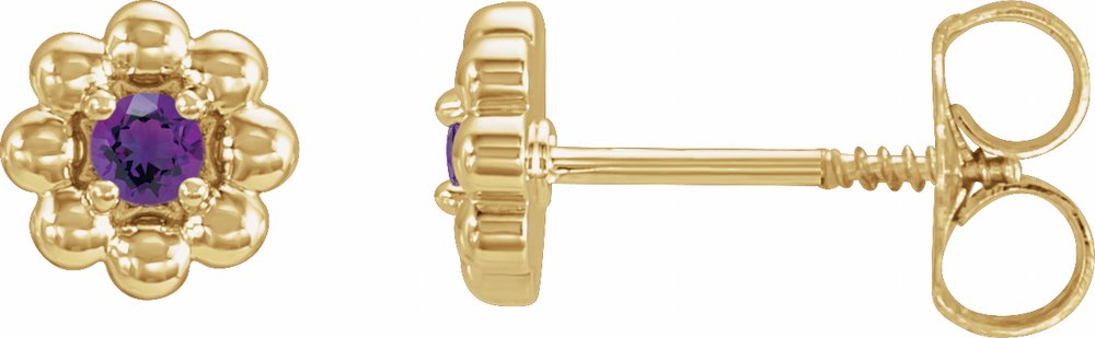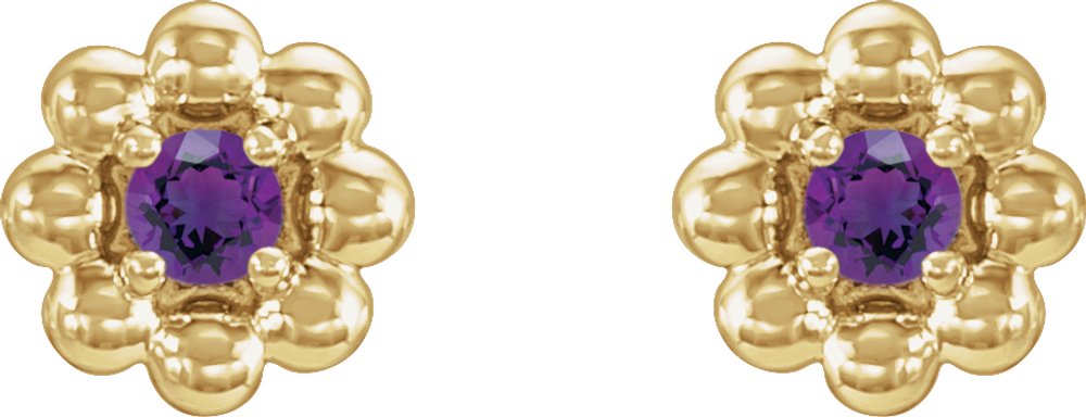 14K Yellow Natural Amethyst Petite Flower Beaded Earrings