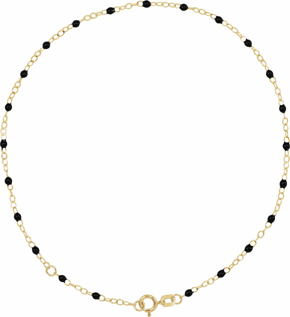 14K Yellow Gold 2 mm Adjustable Black Enamel Bead 9-10" Chain