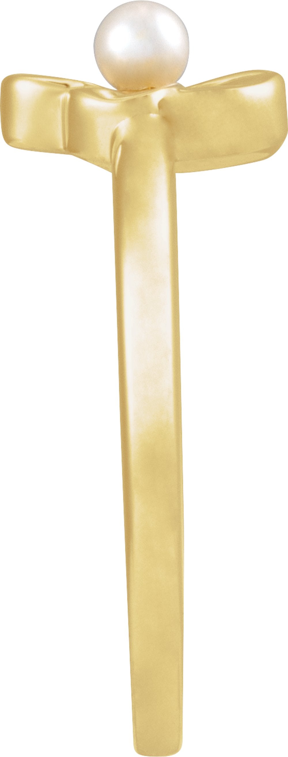 14K Yellow Gold Cultured White Seed Pearl Floral Ring