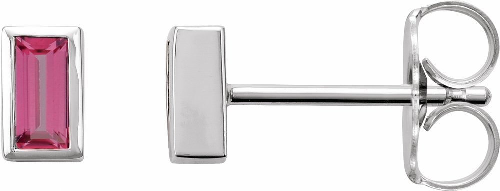 14K White Natural Pink Tourmaline Bezel-Set Earrings