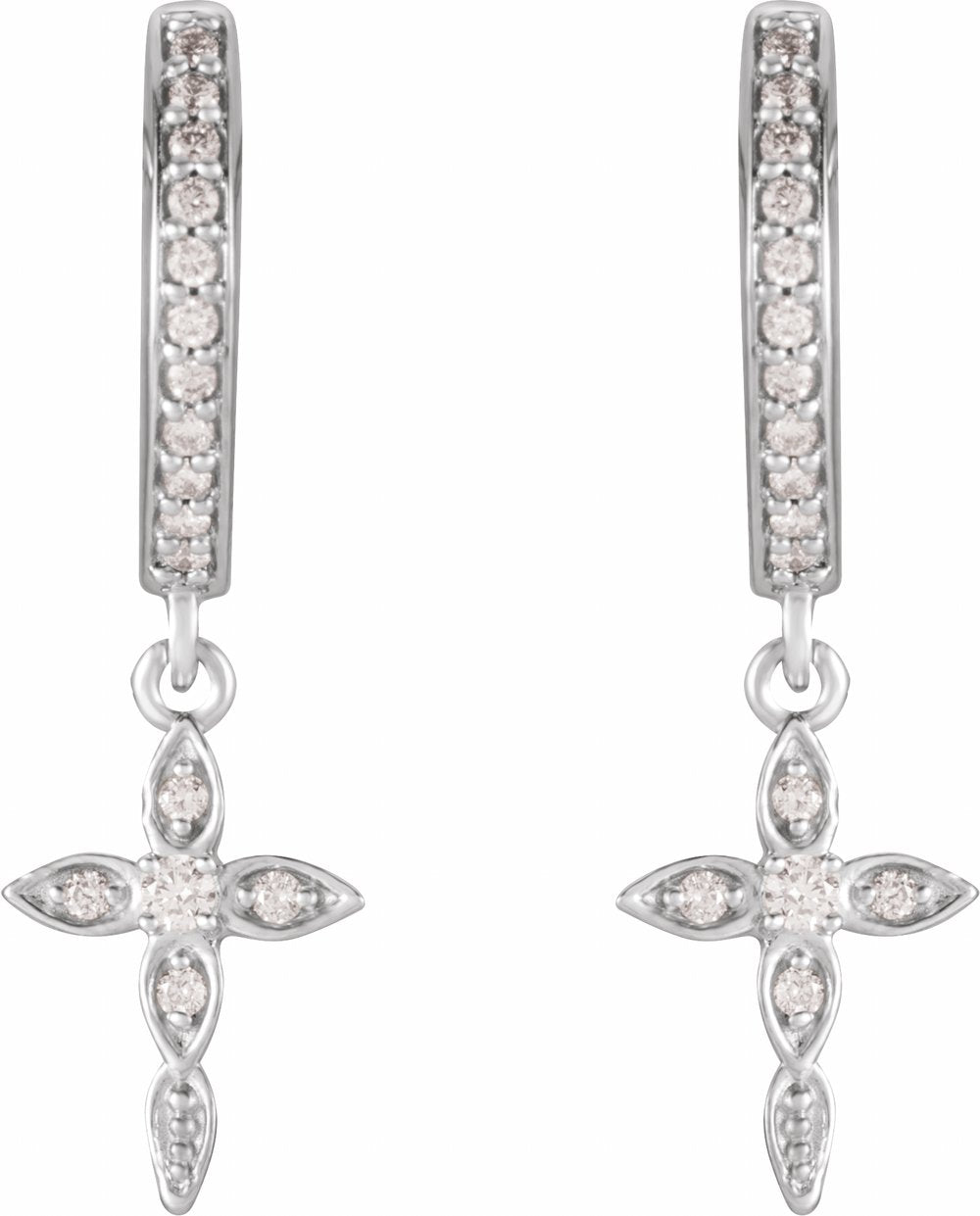 Description: 1/8 Ctw Natural Diamond Cross Dangle Earrings