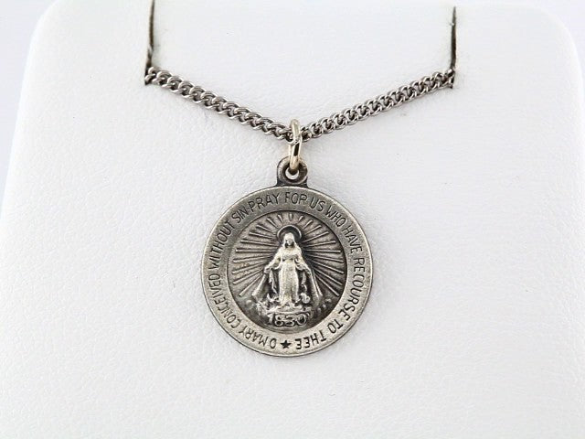 Sterling Silver 12 mm Miraculous Medal 18" Necklace