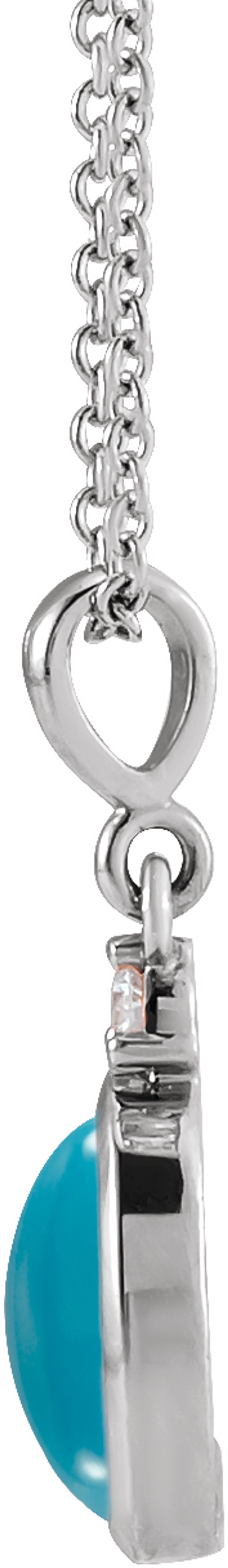 14K White 6x4 mm Natural Turquoise & .015 CT Natural Diamond 16-18" Necklace