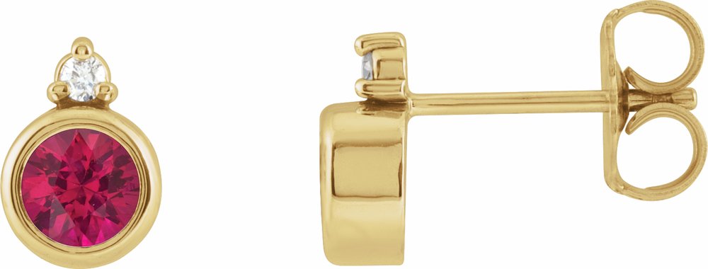 14K Yellow 4 mm Natural Ruby & .03 CTW Natural Diamond Earrings