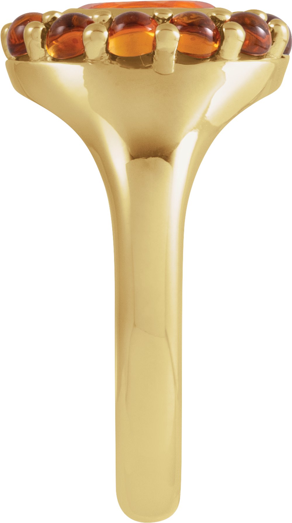 Description: Natural Mexican Fire Opal And Cabochon Natural Citrine Halo-Style Ring