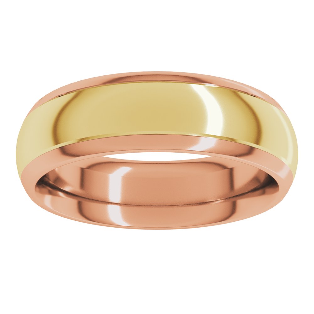 14K Rose/Yellow 6 mm Stepped Beveled-Edge Inlay Comfort-Fit Half Round Band Size 8.5