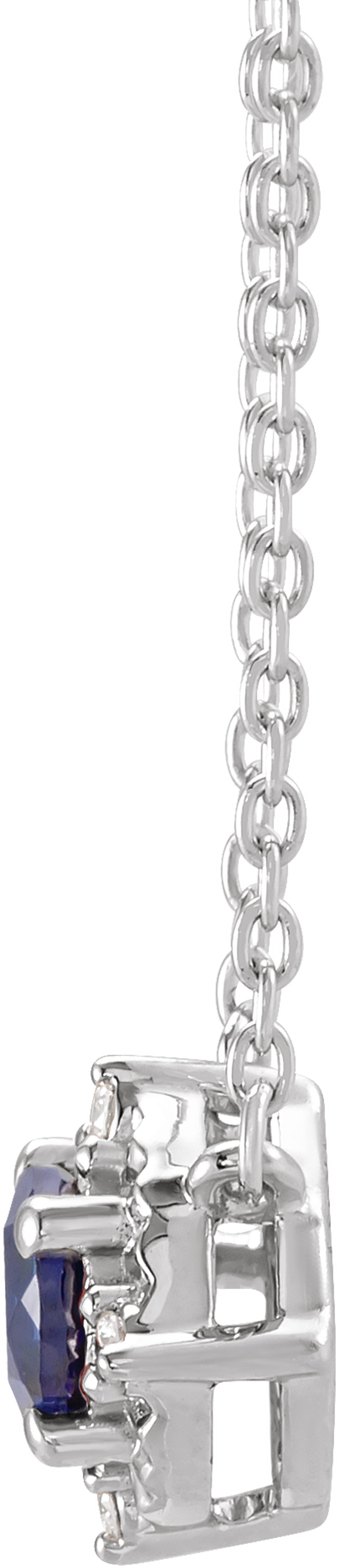14K White Lab-Grown Blue Sapphire & .04 CTW Natural Diamond Halo-Style 18" Necklace