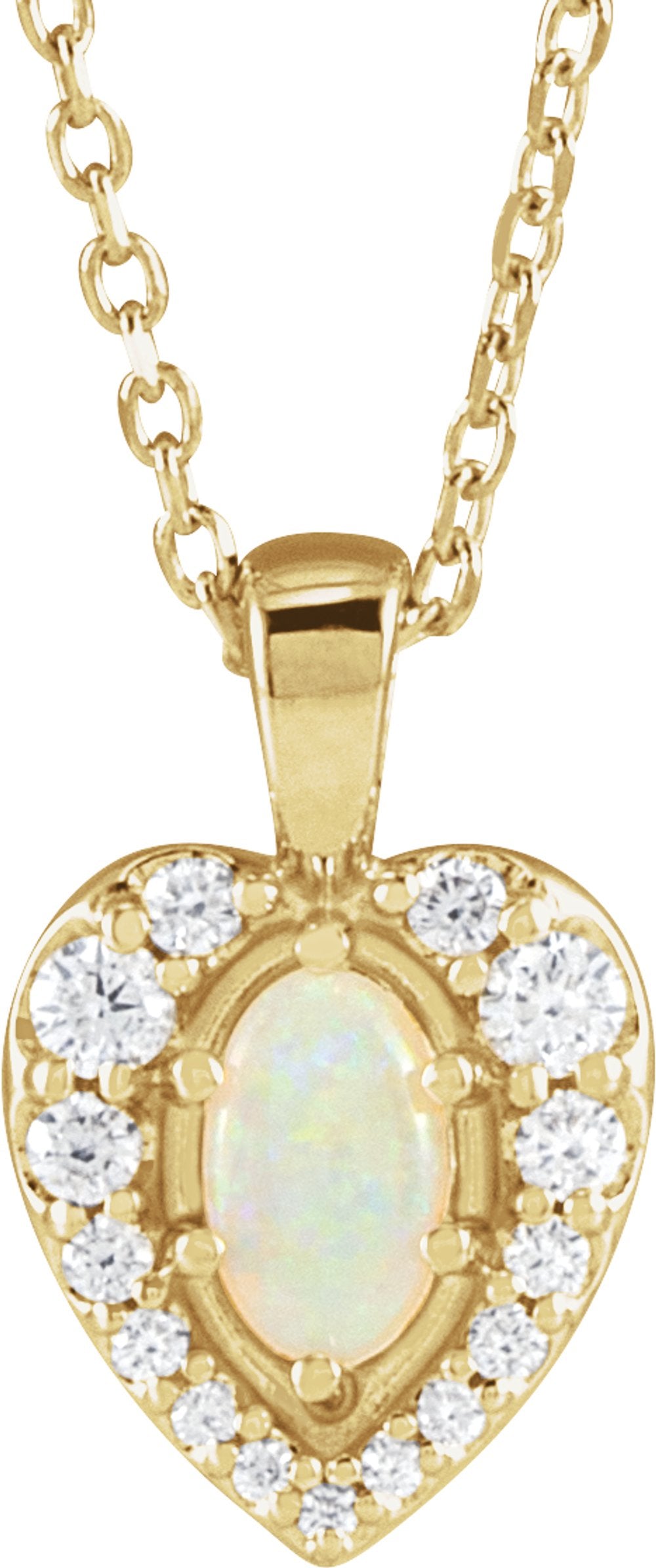 14K Yellow Natural White Opal Cabochon & 1/8 CTW Natural Diamond 16-18" Necklace