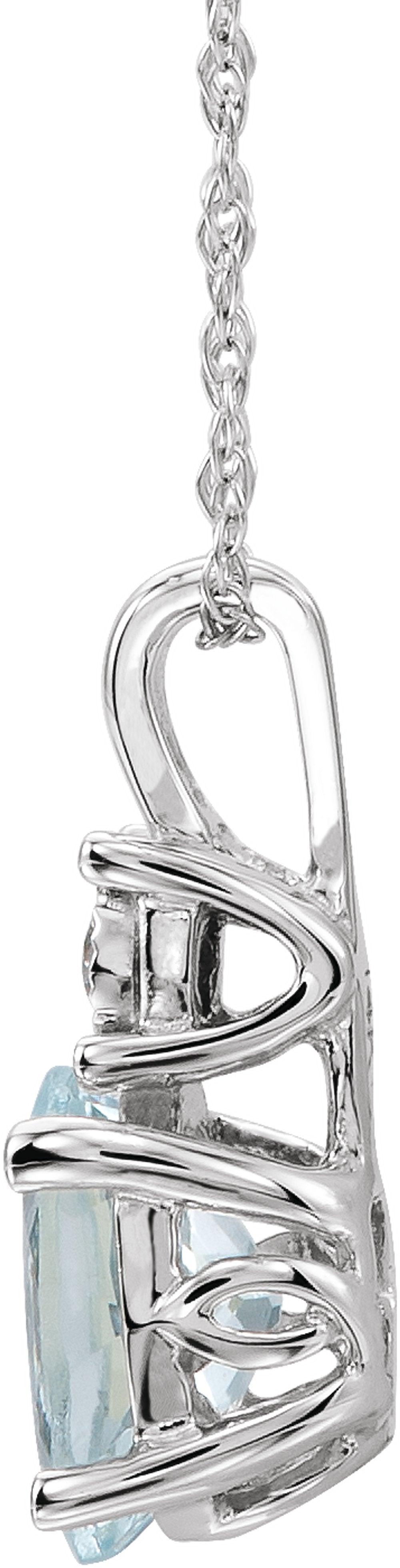 14K White Natural Aquamarine & .02 CT Natural Diamond 18" Necklace