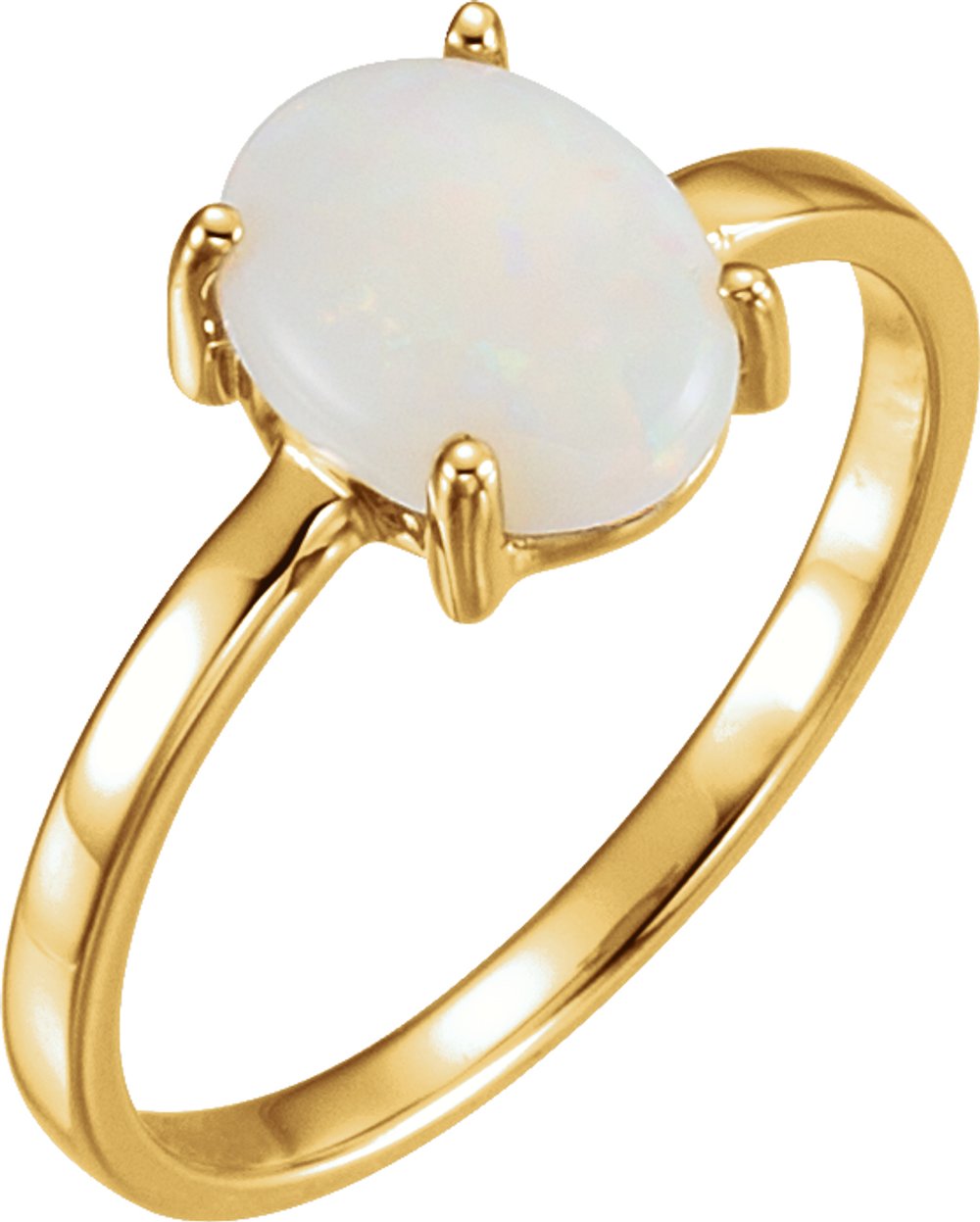 14K Yellow 7x5 mm Oval Natural White Opal Cabochon Ring