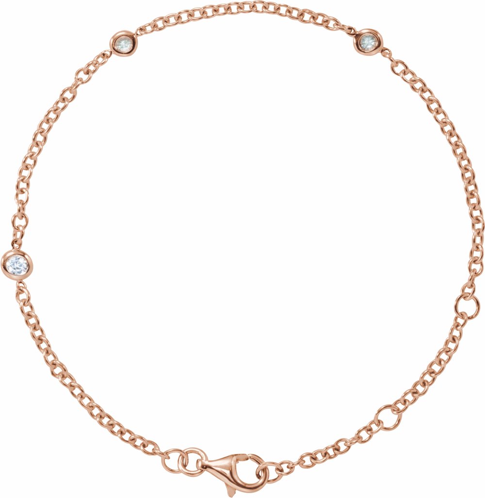 14K Rose 1/6 CTW Natural Diamond Bezel-Set 3-Station 5 1/2-7" Bracelet