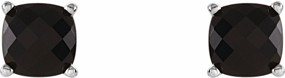Sterling Silver 5x5 mm Cushion Natural Black Onyx Earrings