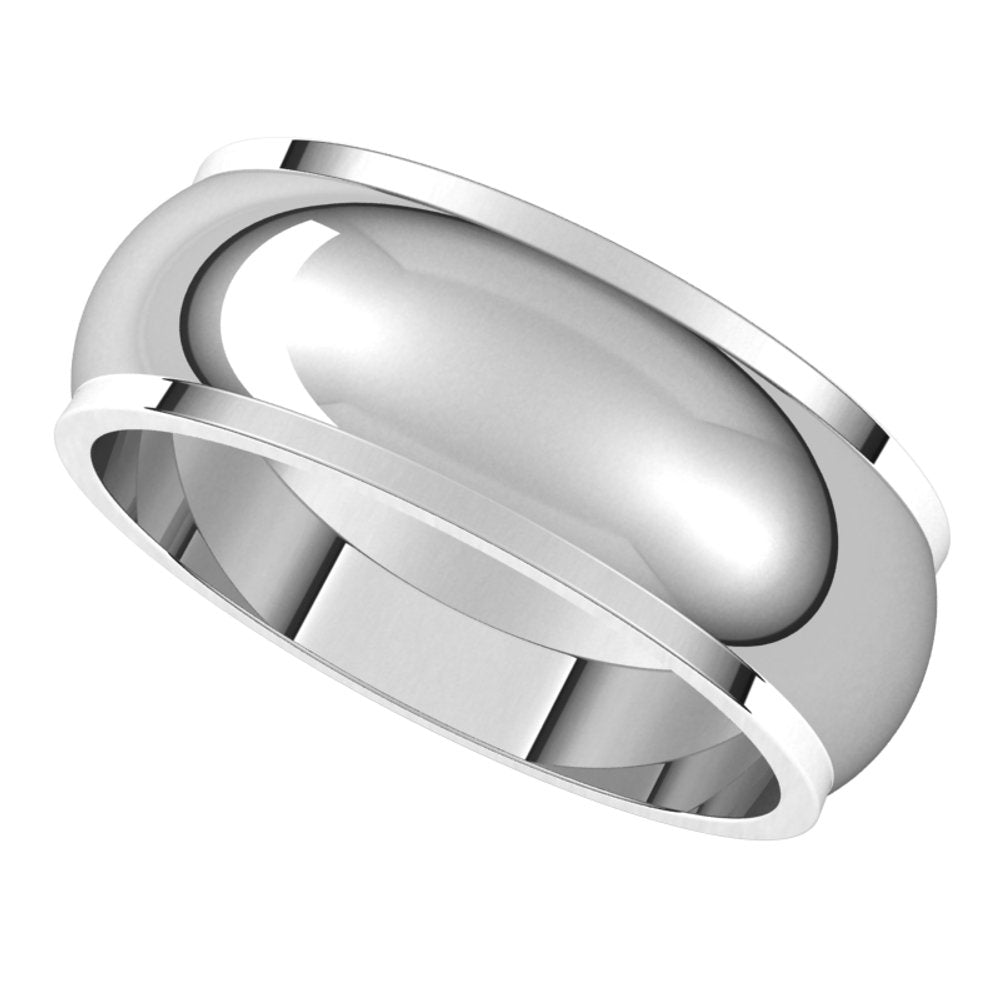 14K White 7 mm Half Round Edge Band Size 10.5