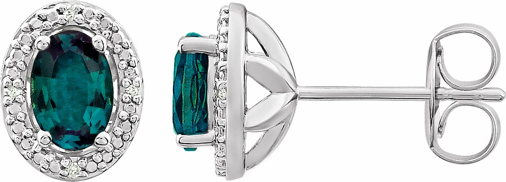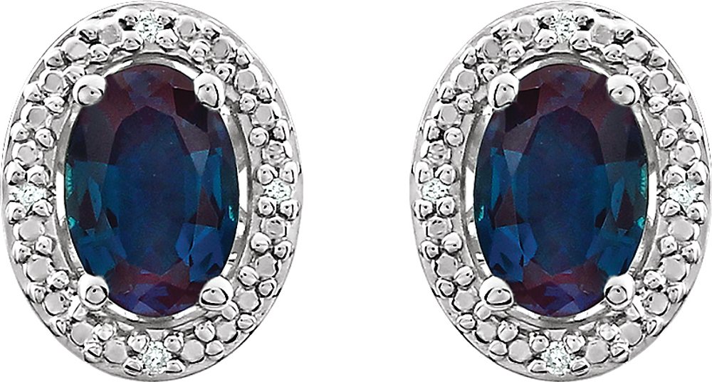 Description: Lab-Grown Alexandrite And .025 Ctw Natural Diamond Earrings With Backs