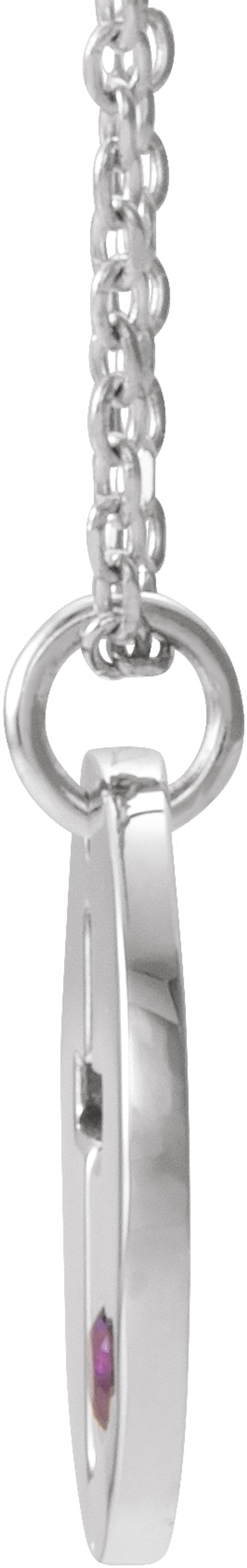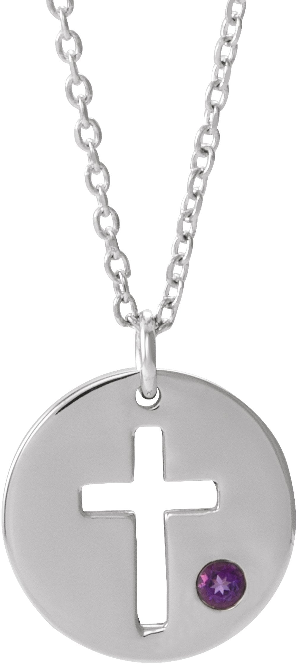 14K White Natural Amethyst Pierced Cross Disc 16-18" Necklace